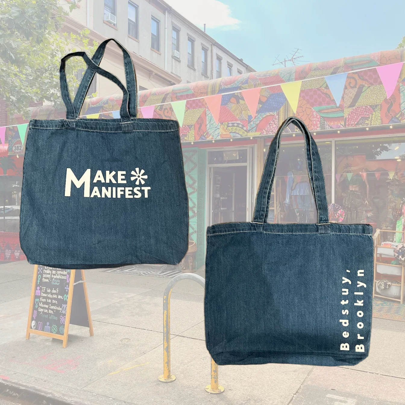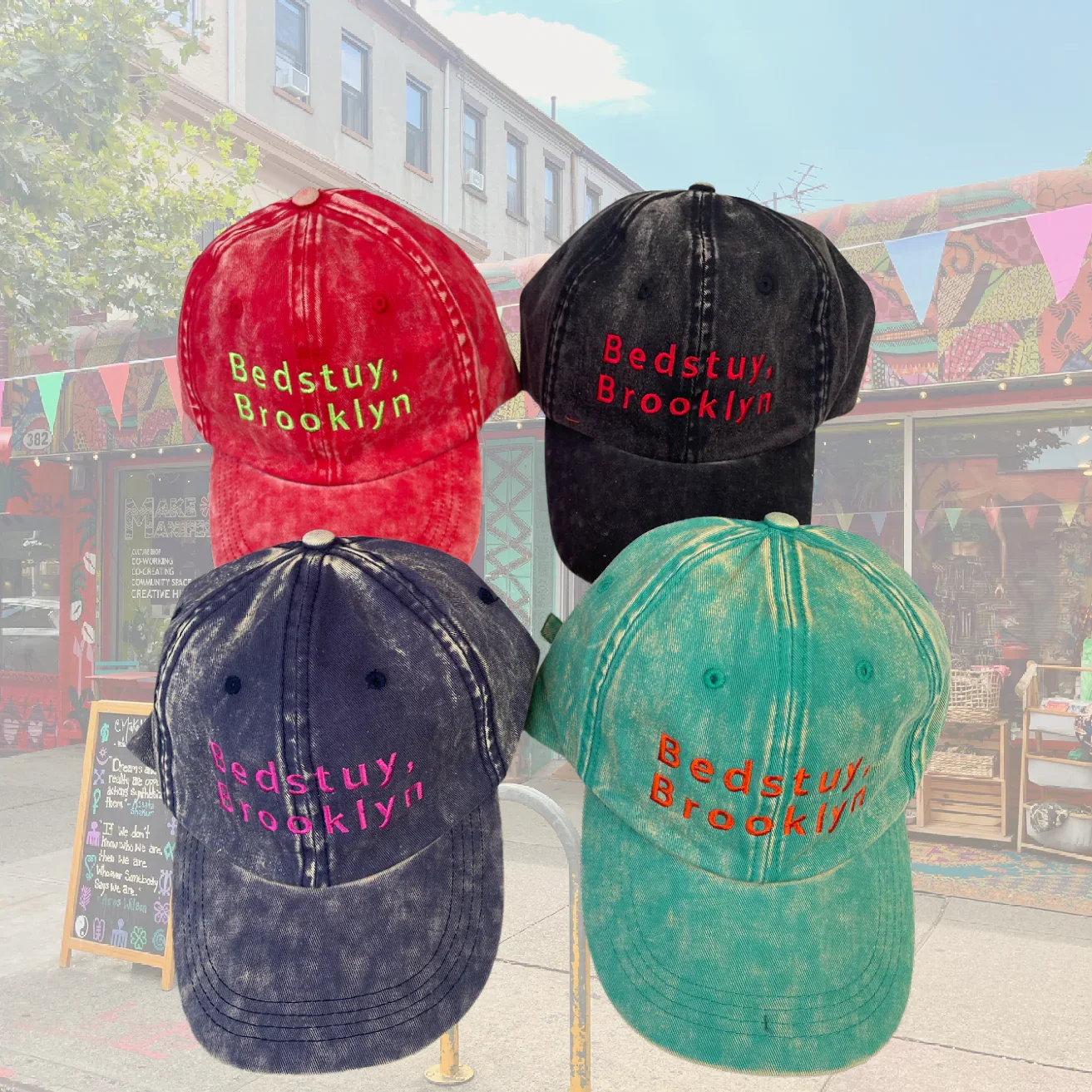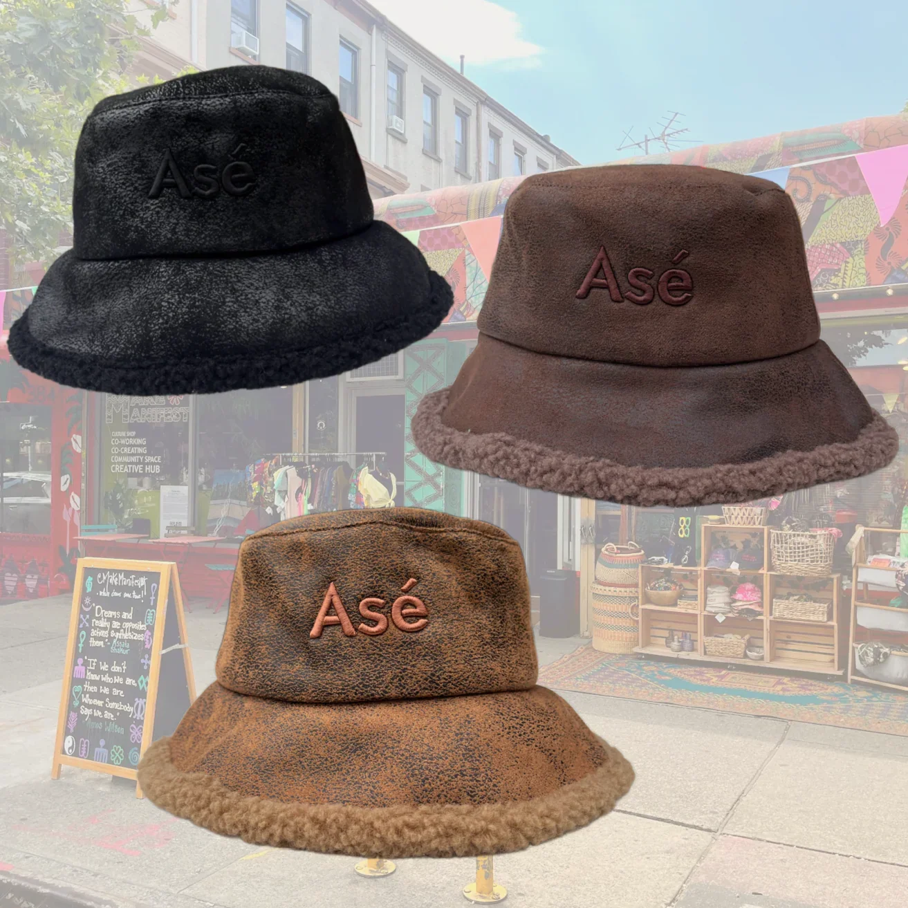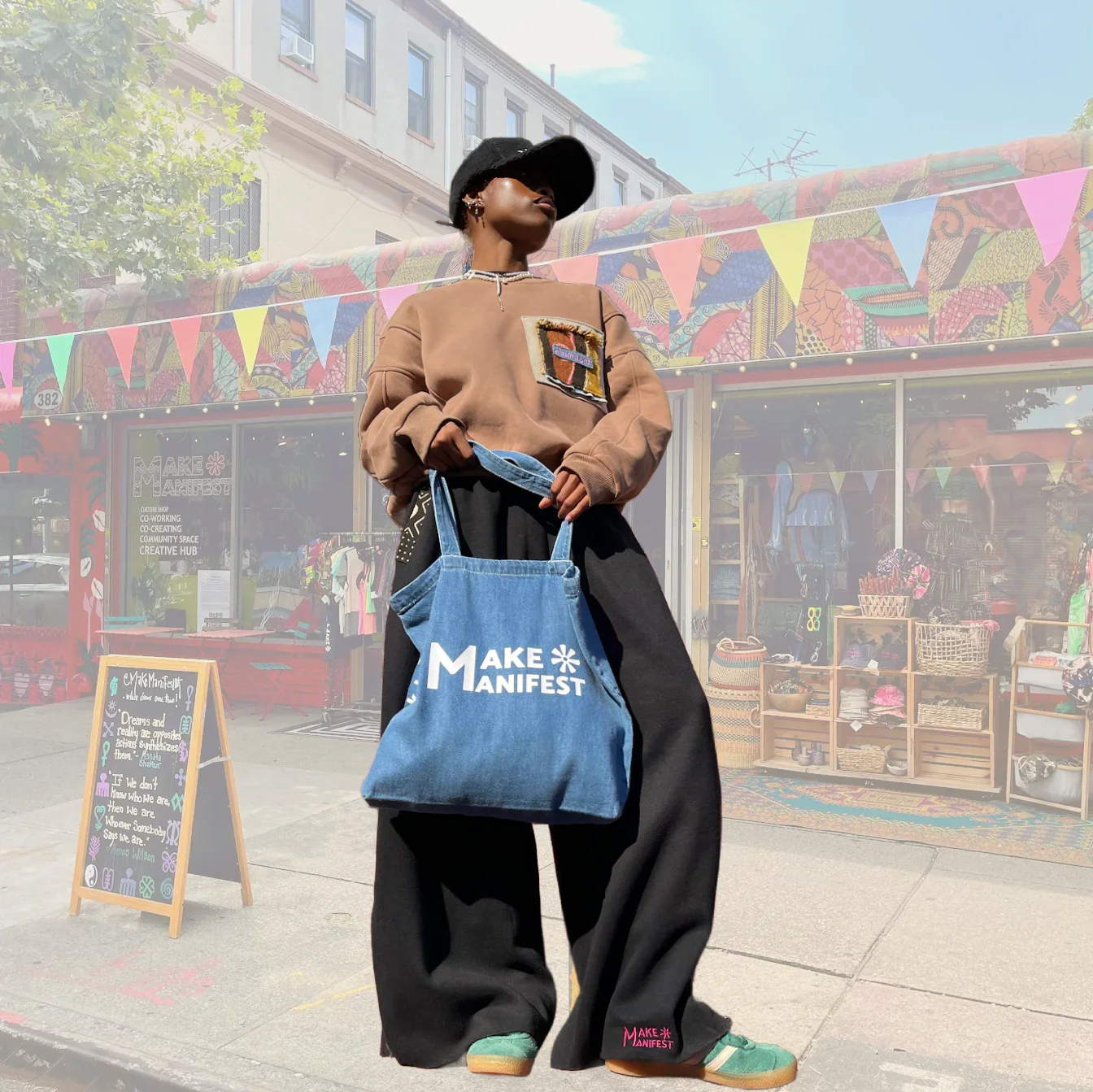 Categories: All Garments Accessories Essentials All / Acid Wash Bandanas $10.00 Evil Eye Beanies $27.00 Make Manifest Corduroy Cap $48.00 22 Cowrie Plush Bucket $99.00 Asé Bucket $75.00 Bedstuy Brooklyn Cap $40.00 Classic MMBK Denim Tote $29.00 Make Manifest Trucker $45.00 Everything works Out Denim Bucket $48.00 Make Manifest Pins $3.00 Ase Denim Cap $60.00