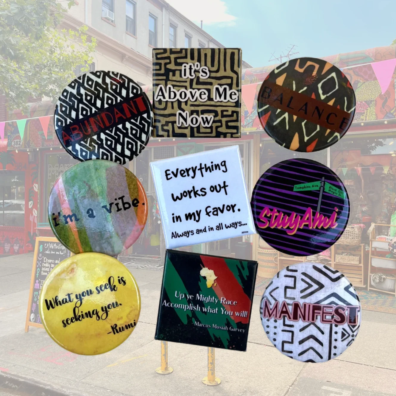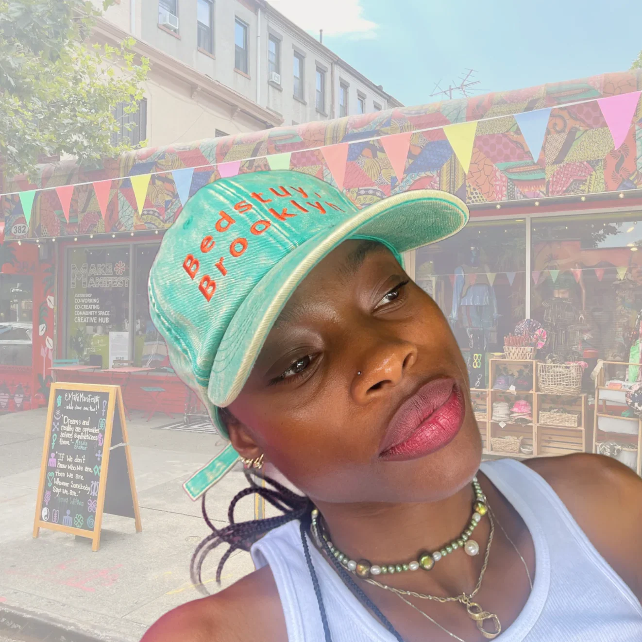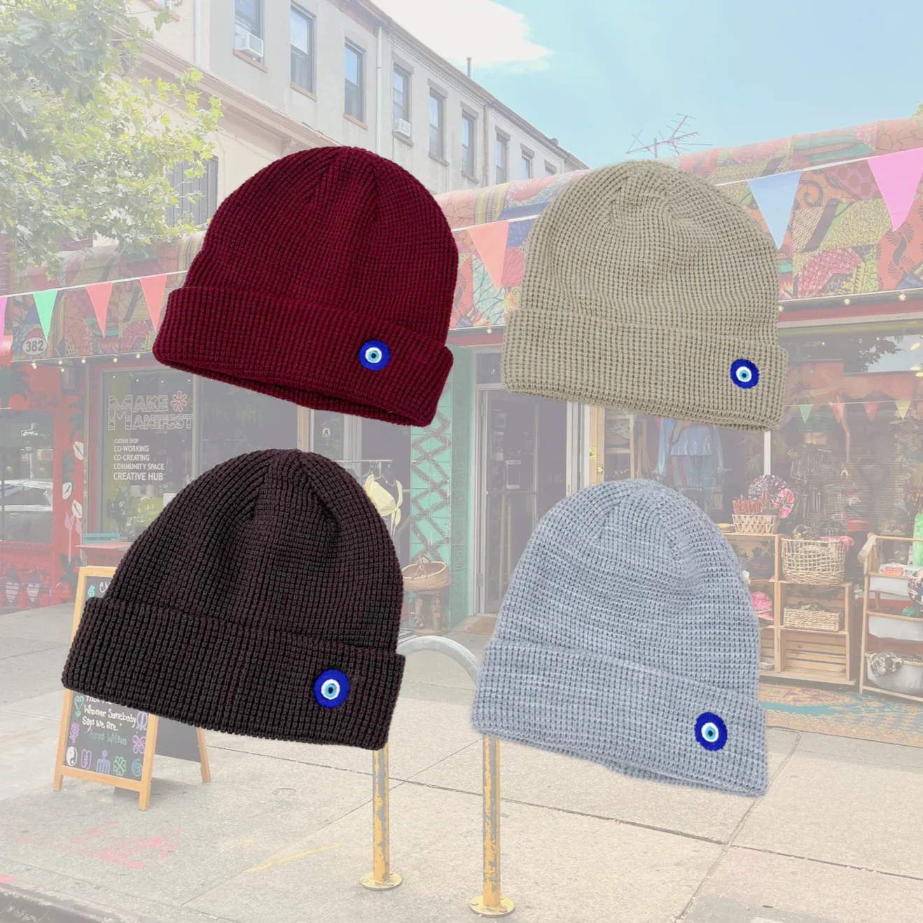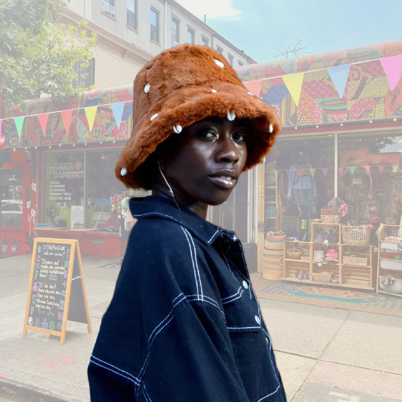 Categories: All Garments Accessories Essentials All / Acid Wash Bandanas $10.00 Evil Eye Beanies $27.00 Make Manifest Corduroy Cap $48.00 22 Cowrie Plush Bucket $99.00 Asé Bucket $75.00 Bedstuy Brooklyn Cap $40.00 Classic MMBK Denim Tote $29.00 Make Manifest Trucker $45.00 Everything works Out Denim Bucket $48.00 Make Manifest Pins $3.00 Ase Denim Cap $60.00